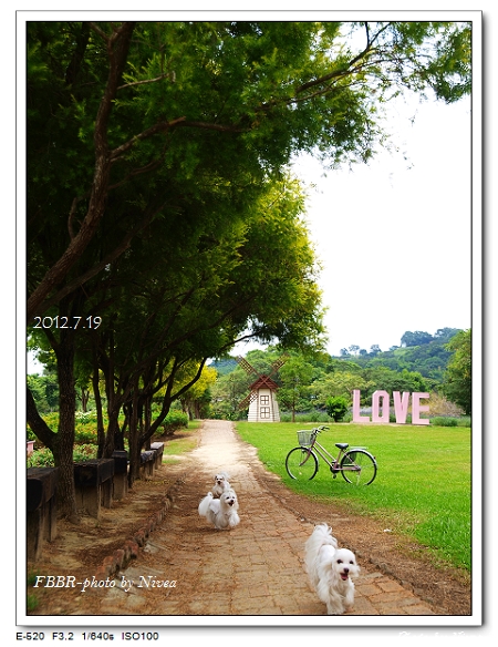 富田花園農場,現在有點光秃秃,但好佳在它有片綠油油的草皮,跟LOVE...讓妮姐勉強在38度的12點整下了車~