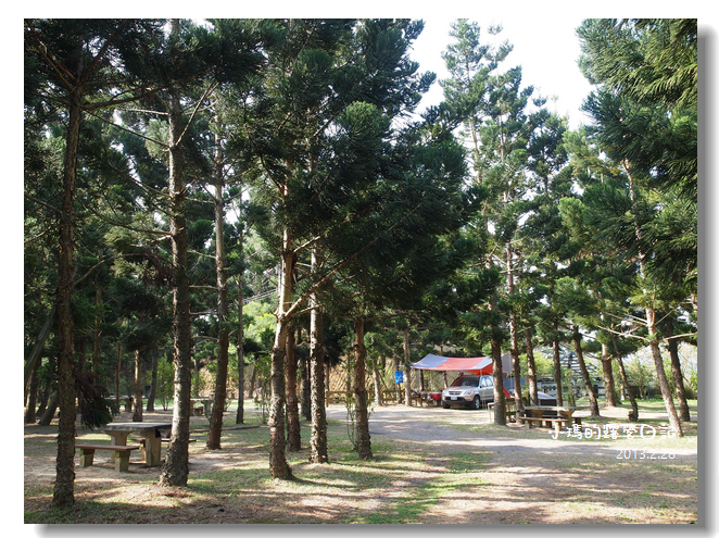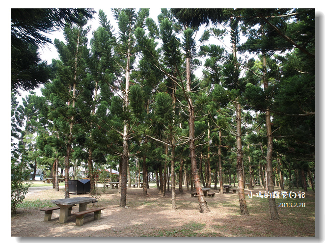 露營區相當大,以衫木隔營位,營位都有石桌椅及烤肉台,