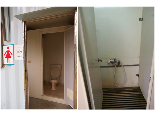 熱水的部份,女生浴室的左一左二間,二天來我都等不到熱水,所以只好往男生浴室去..