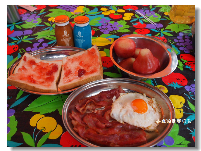 早餐當然要有培根蛋啊...水果也是一定要的啊...