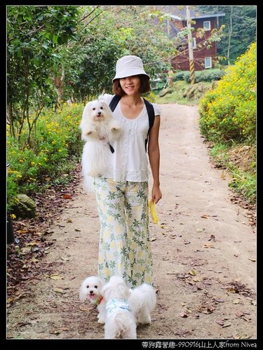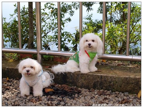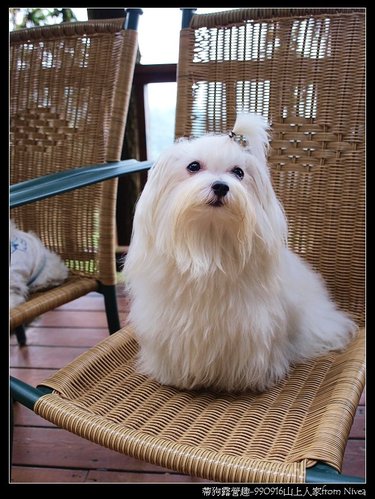 進入森林咖啡館有一小小眺望台,三個毛小孩好奇的坐在上面