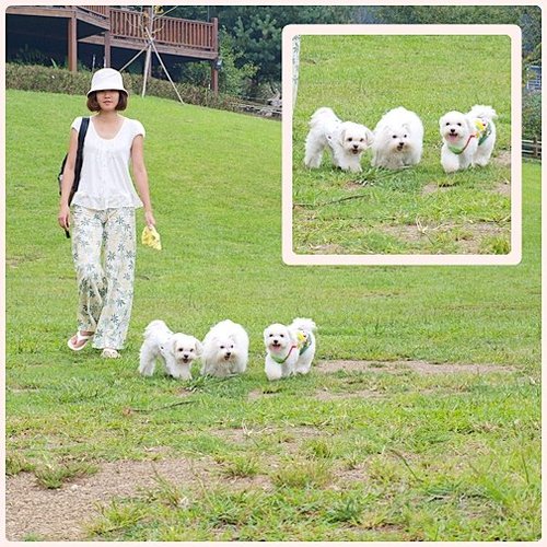 跑的有點累,毛小孩還會找地方乘涼,但....可不可以不要坐在木炭堆上啊,果果...